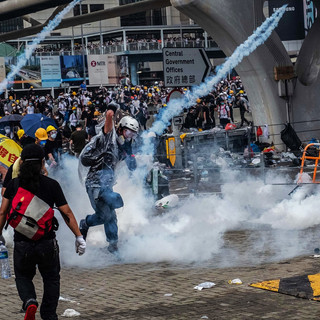 Thousands of regular Hong Kong citizens blocked roads leading to the building with bricks and other debris. Police lined up in the streets by the hundreds, lucky the Chinese people outnumber them a hundred times over.
